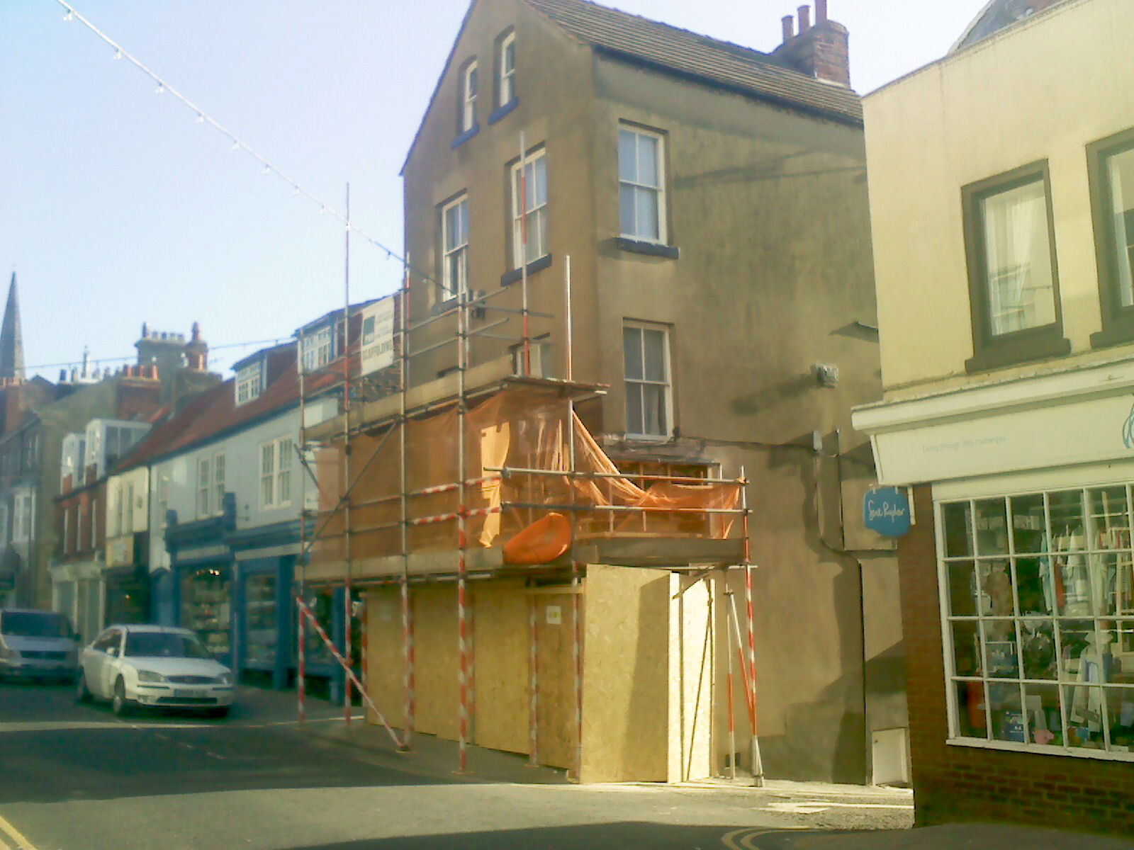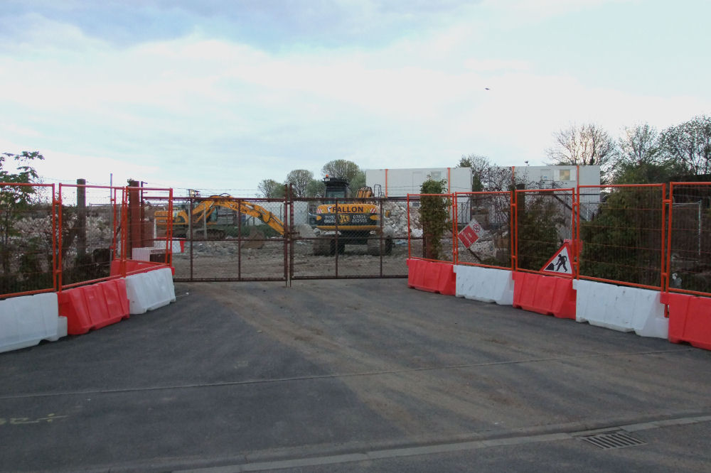 demolition was being undertaken. An orange, plastic sheet fence was unrolled