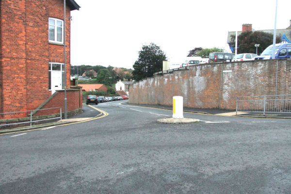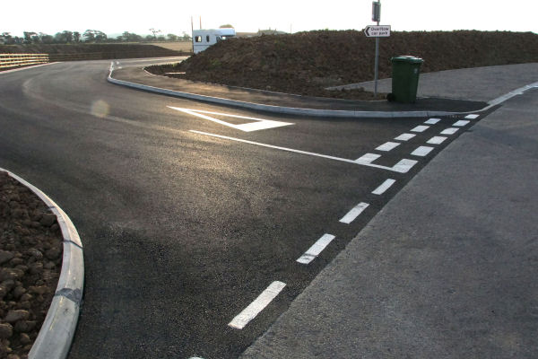 Left: The new give-way road markings, also with markings indicating the entrance to Whitby Seafoods on the extreme left;