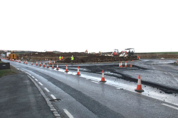 Right: No more work carried out but concrete barriers placed at the start of the new section of road
