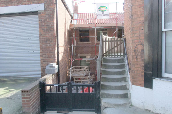 Work began sometime around the month of September 2015 on phase 3, which would see the original house converted into 3 self-contained flats, with one flat on each floor; the basement, ground & first floors. The work involved ripping down a porch-type structure & replacing it with a similar structure but with a flat roof to provide a balcony for use by the floor above. A window was replaced with a door to provide the access out onto the balcony & a staircase was relocated giving more adequate access up to the first floor.