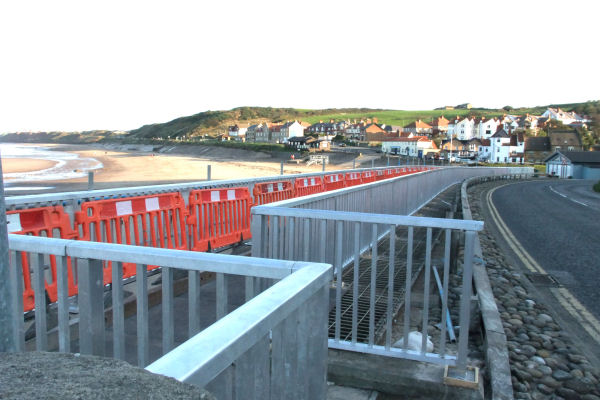 Work was started at the very beginning of September on a permanent repair of Sandsend over-hanging footway, following a temporary repair in the Spring after being damaged by the storms in the previous December.