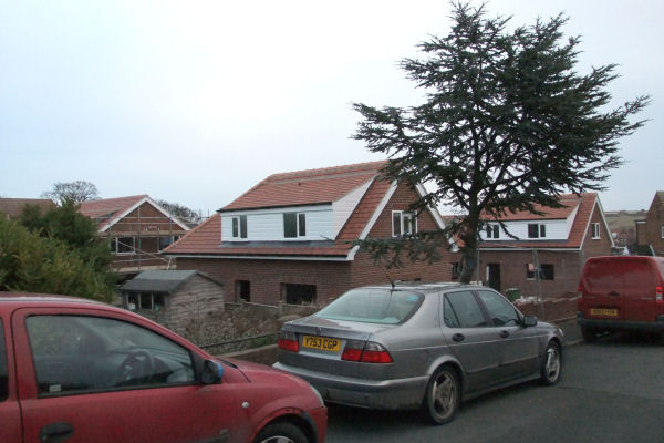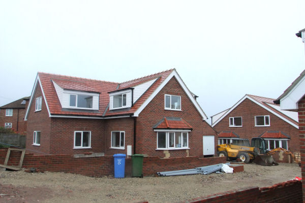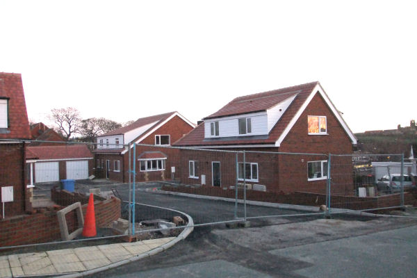Development of 2 houses at Braeside, 79 Coach Road, Sleights complete - Left: The houses with driveway; Right: From the junction of Lowdale Lane & Coach Road