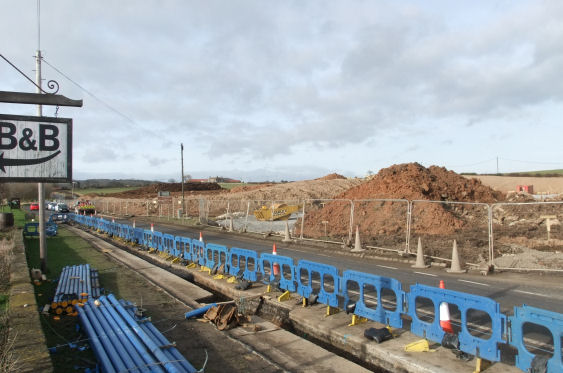 Left: The new link road with work starting from Fairfield Way; Right: The the new road didn't go very far at this stage