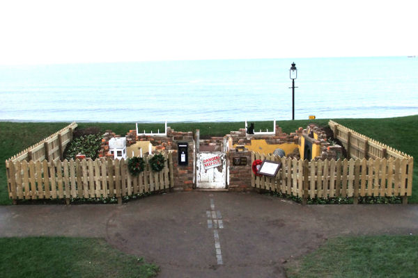 A small feature was created by Whitby in Bloom with work starting around November on part of West Cliff's sunken gardens. A bombed cottage was built to commemorate the centenary of the bombardment of Whitby on 16th December 1914 from a design by local artist John Freeman. An official unveiling took place on the morning of the 16th December to coincide with the centenary of the bombardment of the town.