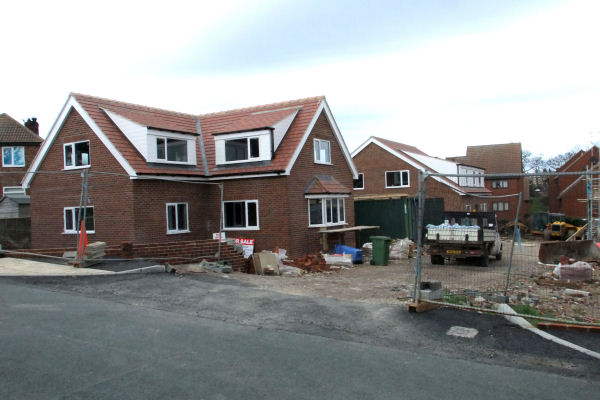 Left: The houses nearest Prospect Hill; Left centre: The house to the back of the site still under construction; Right centre: The house to the rear right almost complete; Right: The house to the rear is now complete