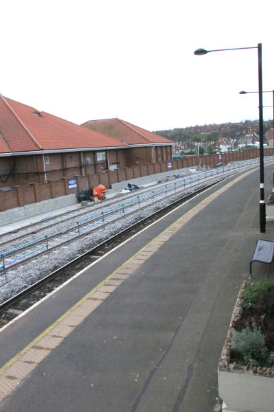 Meanwhile in the Railway Station car park, the metal bollards previously linked with chains marking the edge of the car park were changed, with more bollards installed at closer intervals and the linking chains removed. As the bollards were closer together, it would not be possible to pass a car between them so 2 of the bollards nearest the pedestrian crossing of New Quay Road were able to be lowered in the case of a vehicle requiring an emergency exit from the car park - as was the case a year earlier when that end of Langborne Road was cut off by flood water and cars leaving Langborne Road used that as a cut-through.