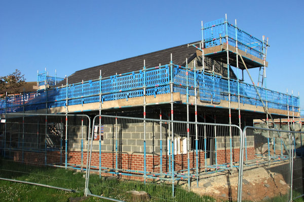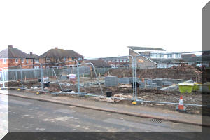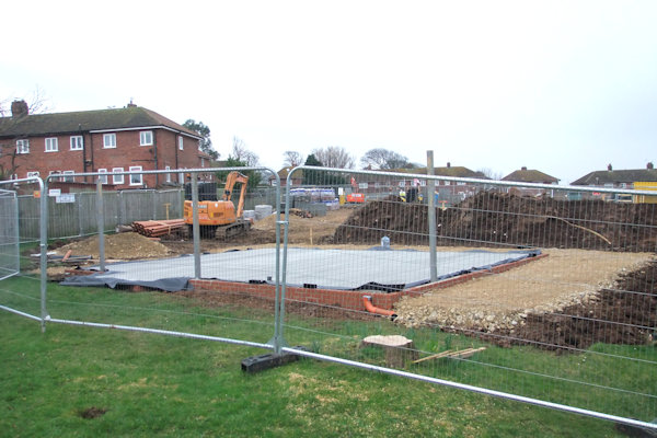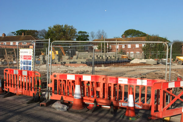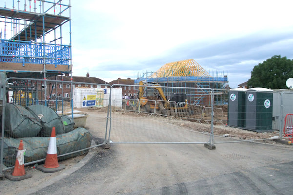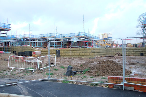 Above from left: The eastern end of the site; The main building nearest the road taking shape; The western end of the site