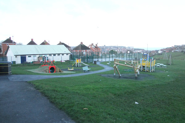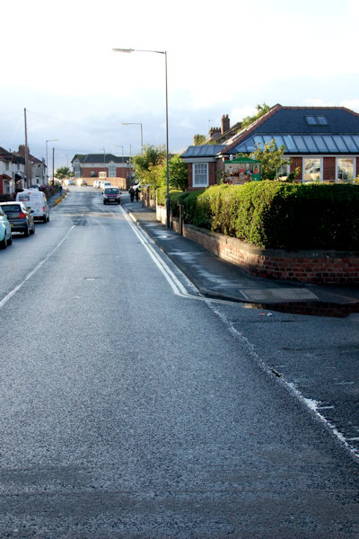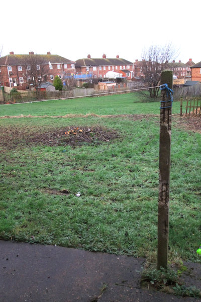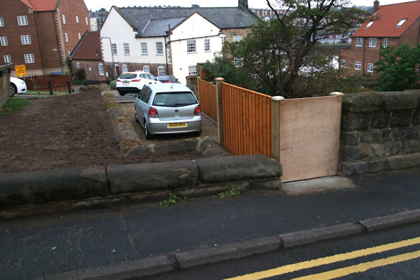 Below left & right: Looking up High Stakesby Road towards Castle Park; The fence