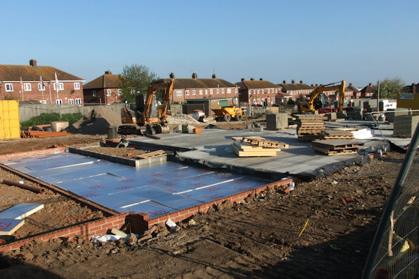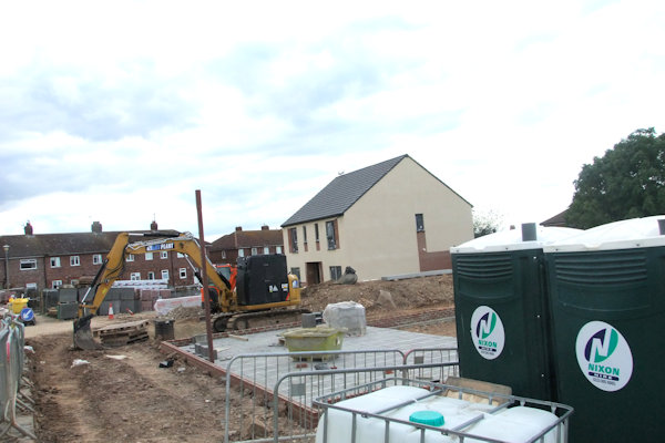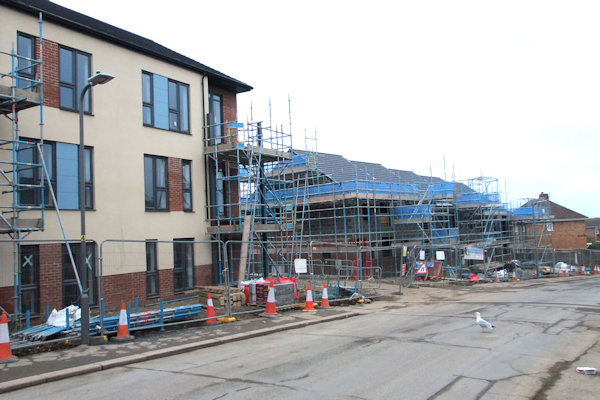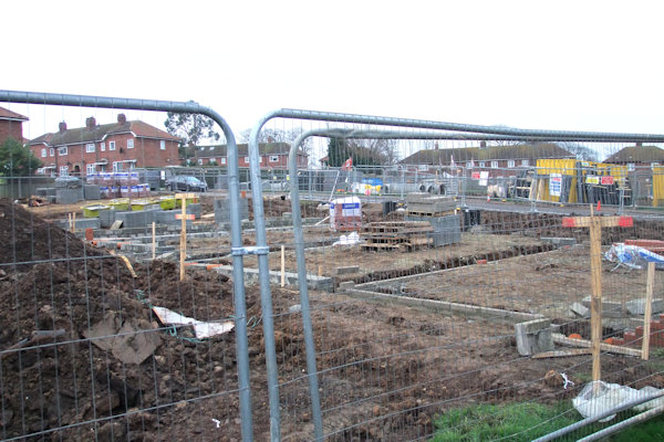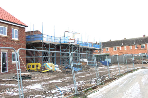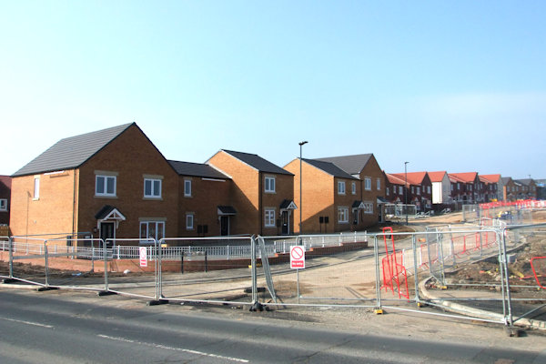 with plots 35-38 also complete to the right; The site from Guisborough Road;