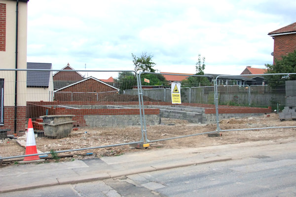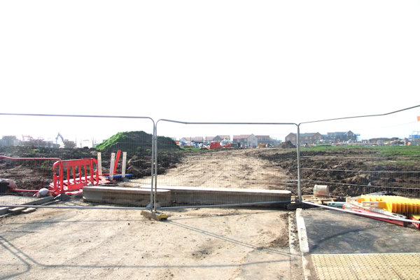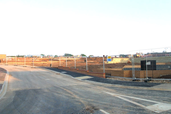 Looking along Convent Way towards what will be plot 31 with a parking area to