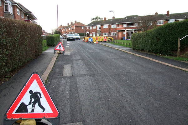 Electricity works at the junction of High Stakesby Road & Four Lane Ends