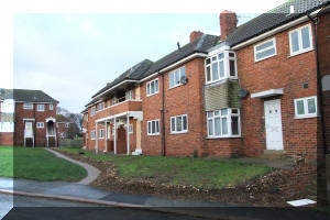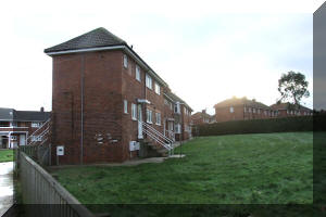 Above from left: Looking up to the development; Along the front of the development; Around the back of the front part of the development; The flats along the front of the development