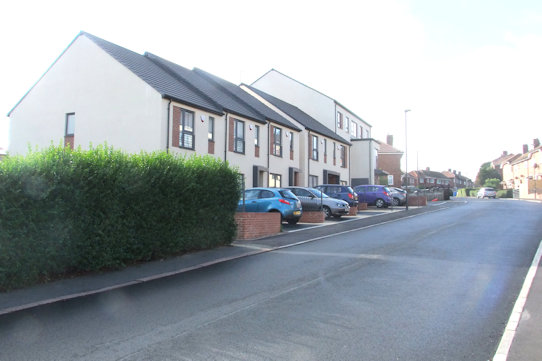 A view along Broomfield terrace with the new buildings on the right; The larger