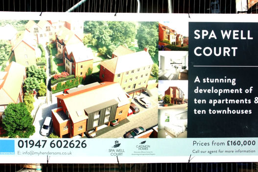 In late January, work lasting 3-years began as the fields were dug ready for a housing development to be built, for Tees Valley Housing by S-Harrison & Thirteen Group with the building company being Kier. The homes on the 16-acre site would be a mixture of properties for sale, shared ownership & rent & originally included plans for a 2-storey care home be built on the site to the North-east corner where farm buildings of Sneaton Castle Farm previously stood as well as 190 units of housing. The care home part of the plan was shelved and the area would be used instead for more housing. The new development 'Chancel Meadows' would feature a mixture of 2, 3 & 4 bedroom properties with a number of bungalows also to be built. 2 vehicular entrances were to be created to the site with an informal play area to the West of the development. The initial plans for the development and those of a little later differed. This was because the north-west end of the site was separated and was not part of Thirteen Group housing association but instead were private homes for sale through the estate agent Hendersons. The development was to be called Castle Fields after Sneaton Castle just to the West of this. Site plans are available below, to view in hi-res, click the relevant thumbnail. The site plan on the left was the original site plan for Chancel Meadows. The one in the centre was the revised site plan for Chancel Meadows and the one on the right is the site plan for Castle Fields.