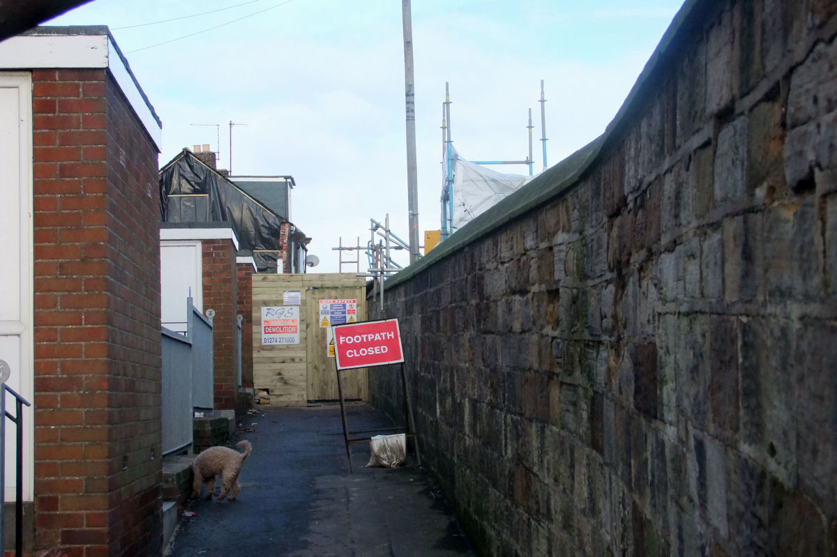 Above Left: The footpath that was closed a few years ago with the metal fence, to the top right of the photo is Franks Terrace