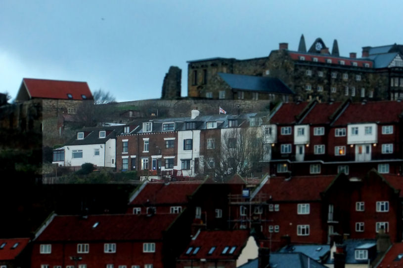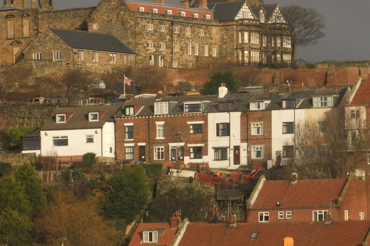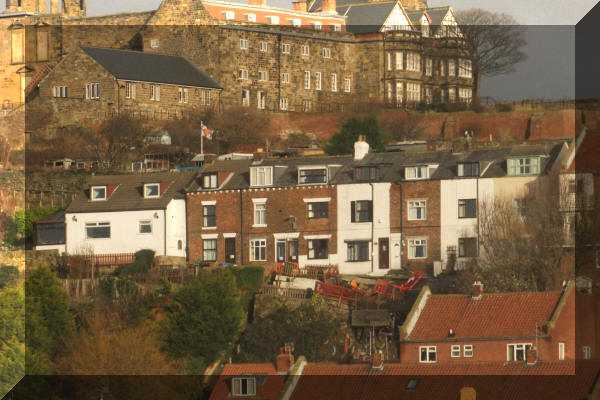 Above Left: View of the affected properties from the Langborne Road area of town, Aelfleda Terrace is in natural colour