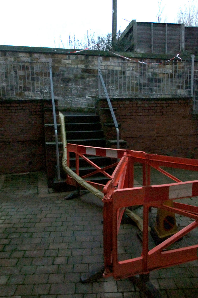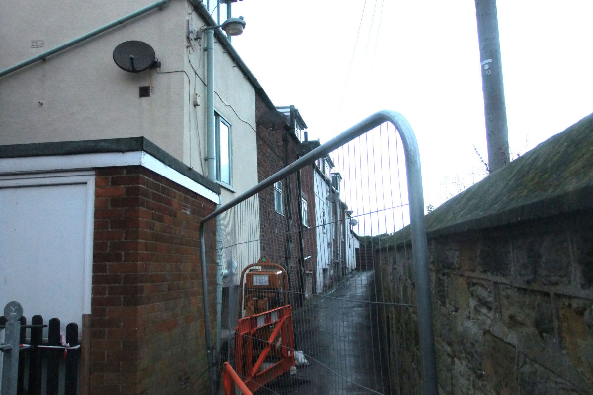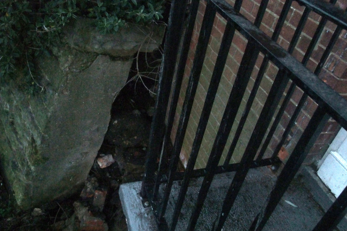 Above Right: Fallen bricks and rubble at the very end of Franks Terrace